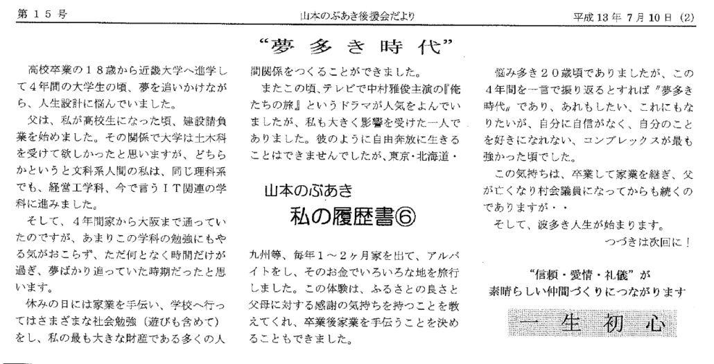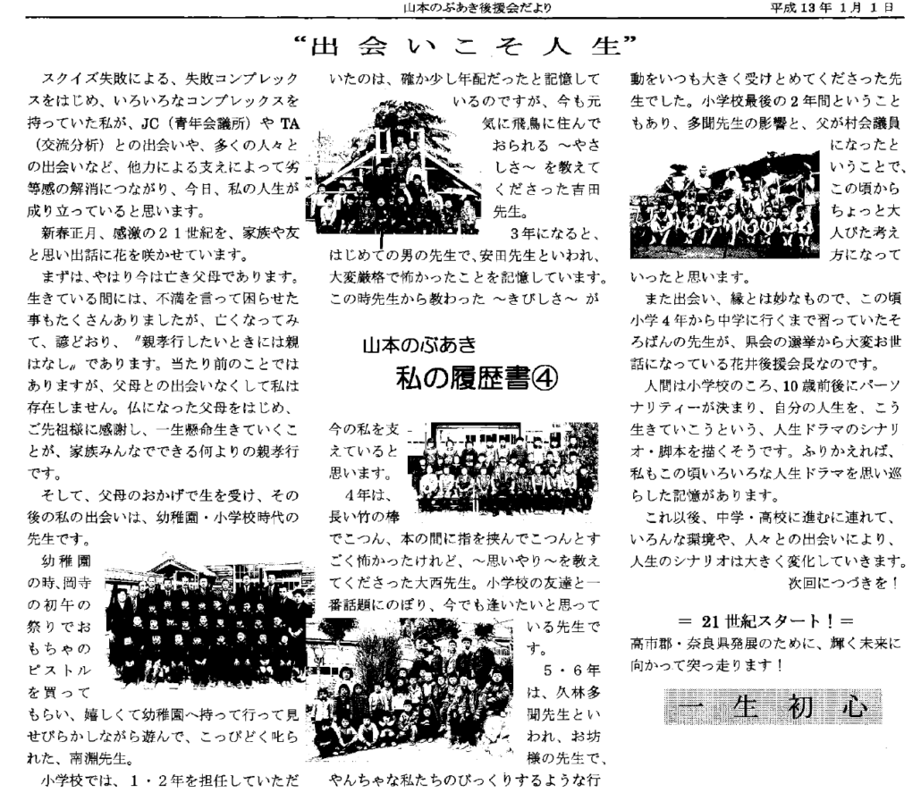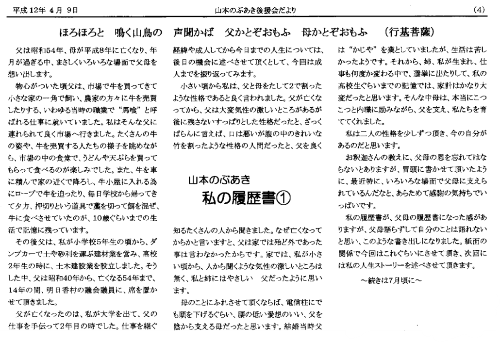 『後援会だより』平成12年4月第10号~平成14年11月第20号に掲載させていただきました。
